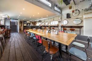 Nous vous proposons une péniche de 1950, aménagée en Cave/Bar à vin en 2019. Elle dispose d’espaces divers et adaptables à un maximum de besoins : une salle intérieure cosy et chauffée/climatisée avec vue au ras de l’eau ; un pont terrasse découvert qui permet de profiter au mieux du beau temps ; un pont terrasse couvert pour être rester à l’abri de la pluie et du vent.